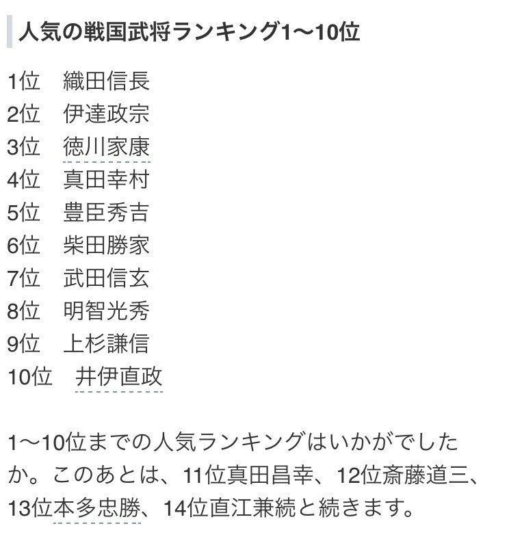 H 戦国武将完全ランキング Etiketa Sto Twitter
